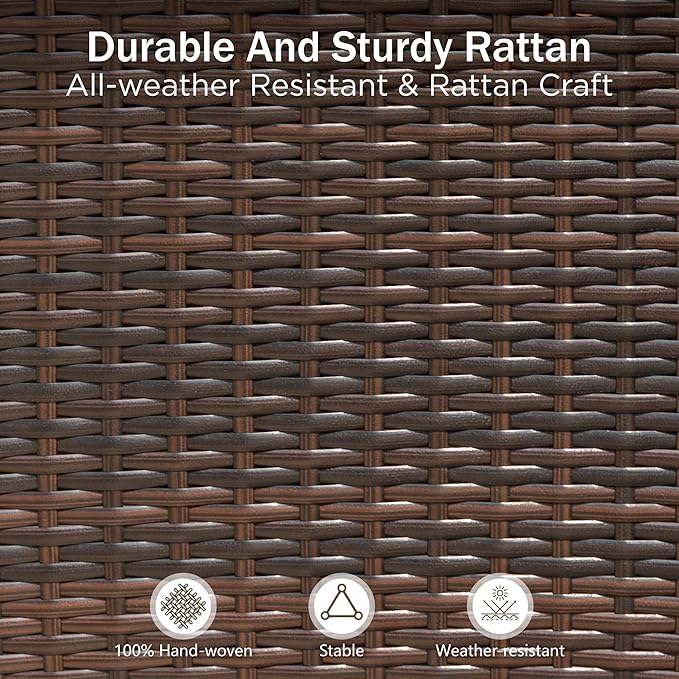 - 【Rattan Chairs with Cushions】 Made of tightly woven weather-resistant wicker, UV & fade resistant. Natural texture wicker material with strengthened dual-wrapped edges, much more durable and stronger than normal rattan material. With 1.97" thick padded cushion, providing comfortable support for long time sitting.