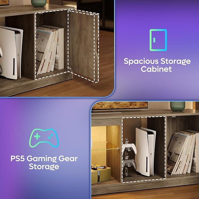 - 【Efficient Storage Solution】Bestier TV stand is designed with open storage space and 2 closed cabinets. Its 3-tier multi-compartment layout providing ample storage space for PS5, Xbox, media devices and gaming consoles. Cable management holes at the back ensure a clean appearance.