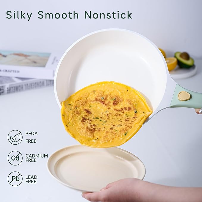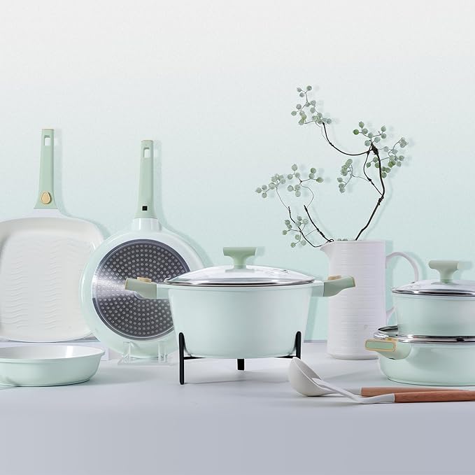- Non-Stick&Non toxic Appeal: Our cookware set features ceramic non-stick coating, making cooking and cleaning a breeze. Food releases easily, and cleanup is a breeze. Non toxic cookware have a nonstick large grill pan, perfect for bacon, steaks, grill cheese, browning onions and more.