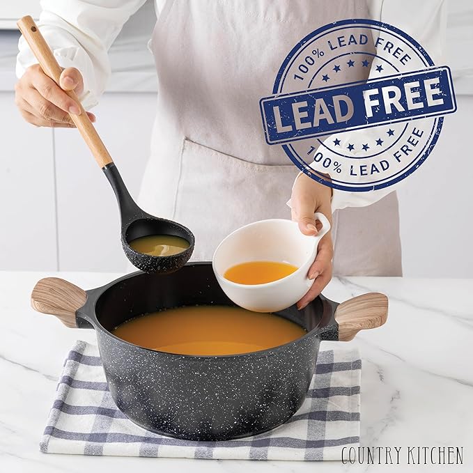 - SAFE COATING - Our Cast Aluminum pots and pans are non-toxic and safe to use for your everyday cooking. Cookware without the chemicals that can be used as a soup pot, sauce pan, skillet or non stick frying pan set. with superb food release and easy cleanup. Hand wash recommended to maintain the nonstick finish.