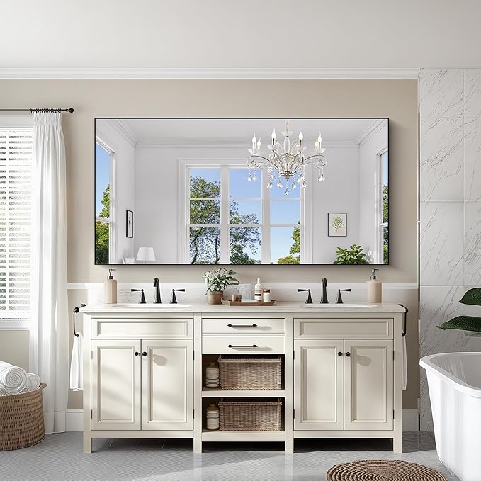 - Modern Design:KOCUUY 72x36 black vanity mirror is with innovative design which gives the wall mirror a more fashion feel. With a classic square corner, the wall mounted mirror allows for creativity and functionality in bathroom, bedroom, entryway and anywhere else. Let your living space be an expression of your personal style, not limited to modern or contemporary, farmhouse or industrial