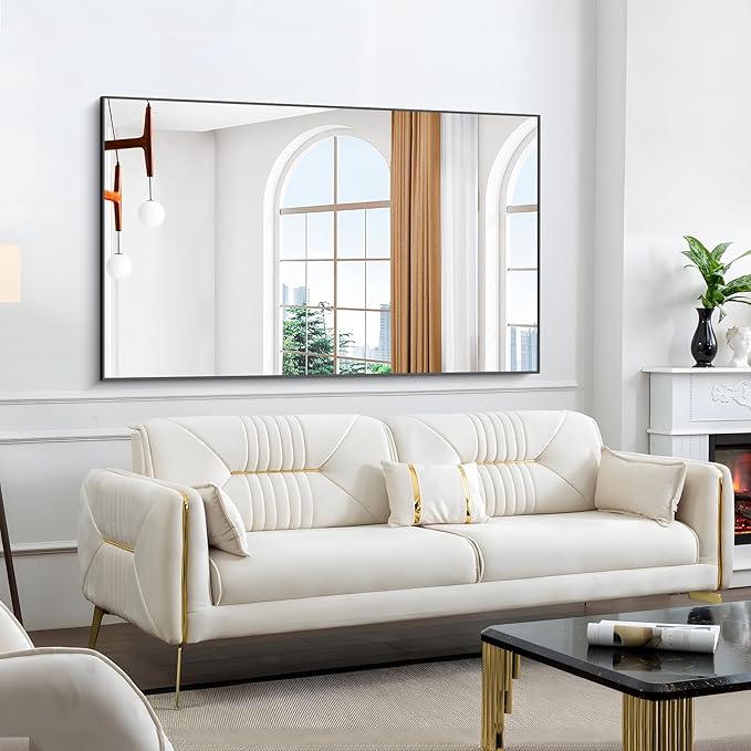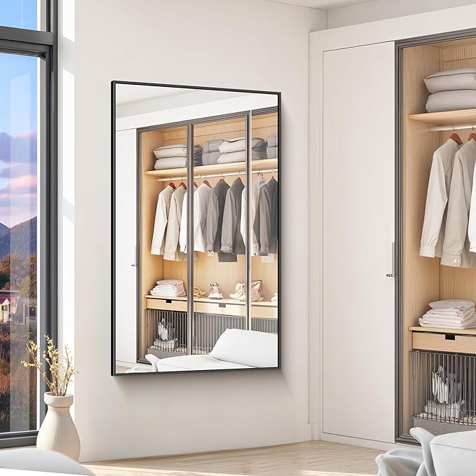 - Easy Installation:KOCUUY rectangular mirror can be installed horizontally or vertically. Please use the side frames for fixation to avoid excessive pressure on the top frame, ensuring even stress distribution and extending the mirror's lifespan. Follow this guide for best results