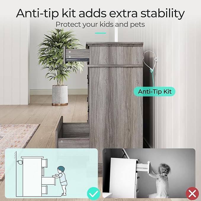 - Safety First: Equipped with a wall anchor kit to prevent tip-over incidents, this dresser for closet prioritizes safety. Smooth metal runners with safety stops ensure drawers stay securely in place. Assembly instructions and hardware are included for easy setup.