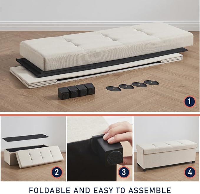 - FOLDABLE AND EASY TO ASSEMBLE - Need some extra space? Simply fold this ottoman and store it away until you need it again. And setting it up is a breeze - no tools required. Simply unfold the ottoman, place the base insert and place the lid on top. It’s that easy!