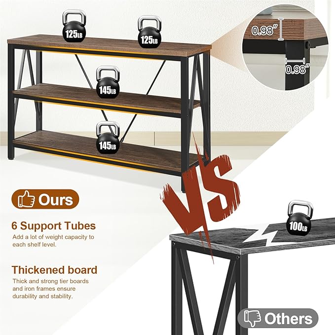 HOMISSUE Entryway Console Table, Rustic Console Table with Wide Storage, Industrial Foyer for Entryway with 3-Tier Open Shelves, Entry Tables for Living Room, Hallway, Brown, 47 Inch