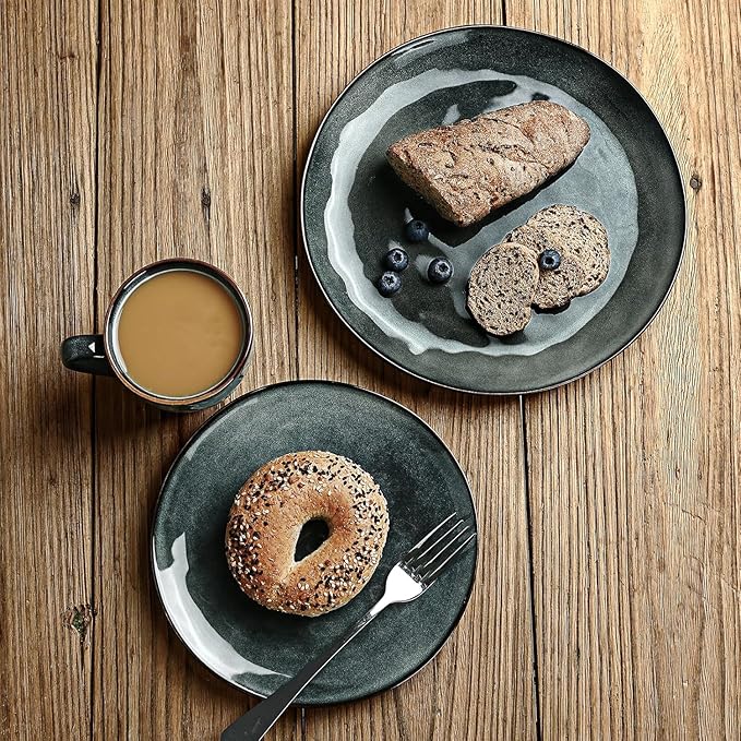 - 【Double Reactive Glaze】Double reactive glaze are combined through firing at high temperatures to create a special and fantastic glaze color. The color of the same set of tableware may have some differences, so that each plate and bowl is unique. This glaze also tends to show different colors depending on the light. The color may be a little different from what you see on the screen