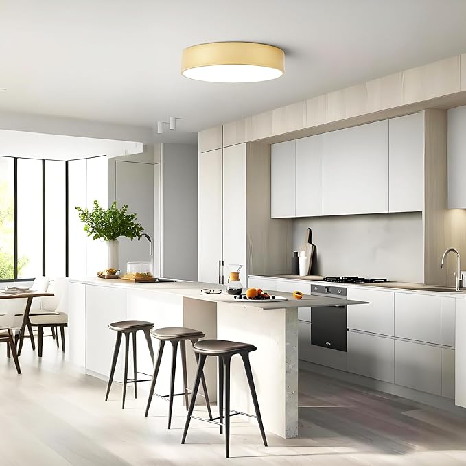 Dimmable Modern Large Flush Mount Close to Ceiling Light Fixture,Round Painted Gold LED Ceiling Mounted Lights Fixtures,5CCT 2700K-6000K Lighting for Kitchen Master Bedroom Living Room,15.7in