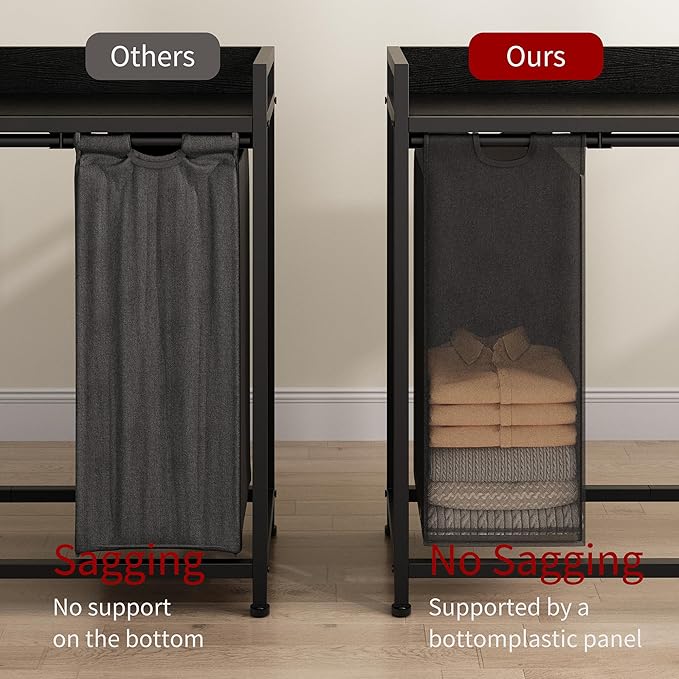 - Detachable and pull-out laundry bags - This laundry sorters is equipped with detachable and pull-out laundry bags. You can easily pull out the laundry bags, fill them with clothes, and then put them back into the laundry hamper with lid. It also has removable wheels, so you don't have to struggle to move the entire laundry basket. Just give it a gentle push or pull, and you can easily move it between different rooms, eliminating the hassle of carrying the laundry hamper.