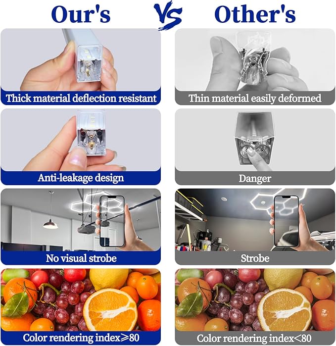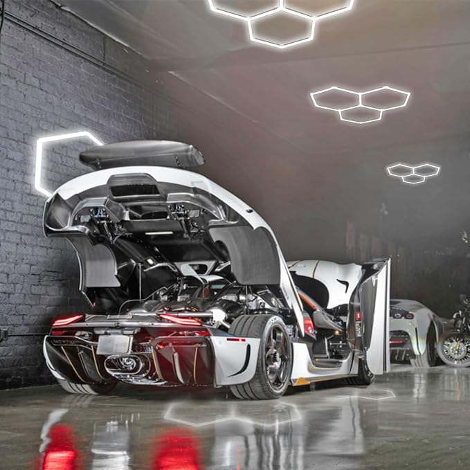 - High-end design: honeycomb lights design closely follow the modern decoration style, fashionable atmospheric design style for garages, Auto Beauty Shop,shops, basements, repair shops, car washes, storage rooms.Car Detailing Car Detailing