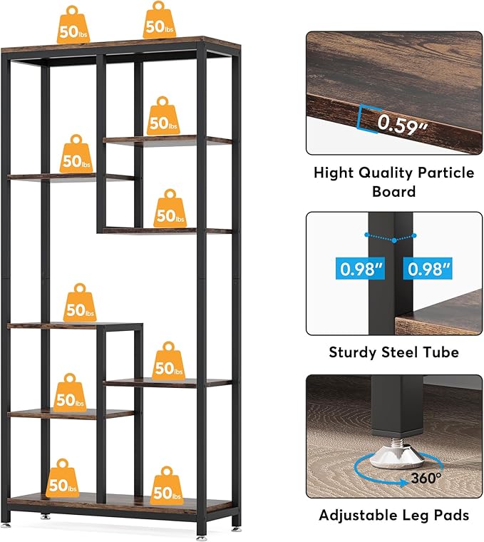 - 【Ample Storage yet Space Saving】✔ Features 8 open staggered shelves, maximize the vertical space that provide plenty of space for storing and displaying your books, photo frames, collections, etc. Keep your space tidy and organized