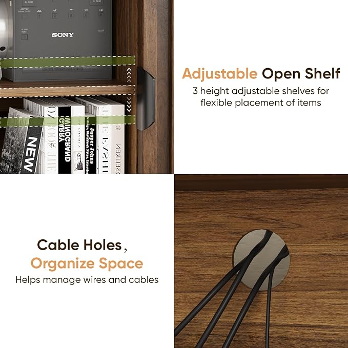 - 【Convenient Storage】The walnut fluted TV console offers two cabinets and an adjustable middle shelf. It features wire holes in the middle for easy cable management, allowing you to discreetly store your belongings and keep your space tidy and clutter-free