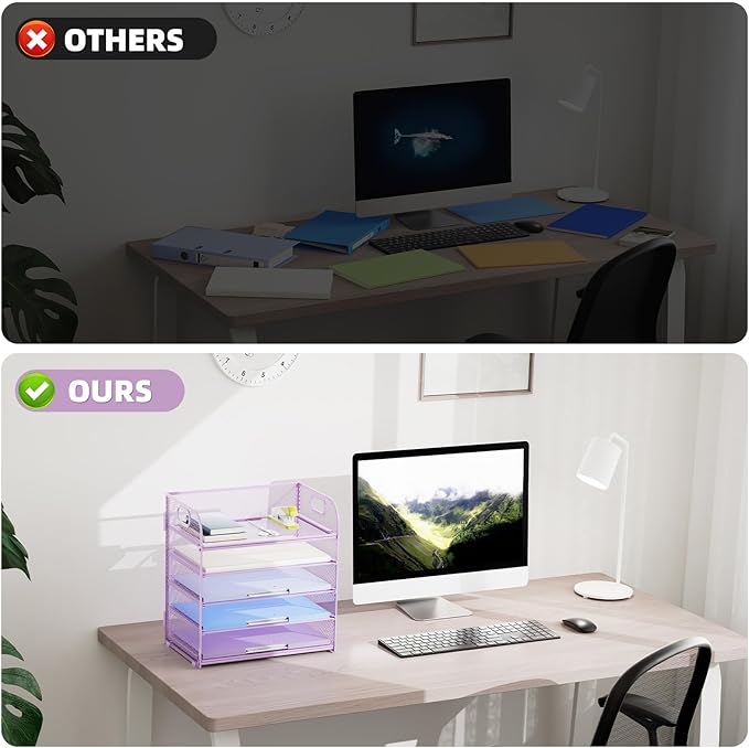 Marbrasse Paper Organizer Letter Tray, 5 Tier Mesh File Organizer with Handle, Paper Sorter Desk Organizer for Home Office Supplies - Purple