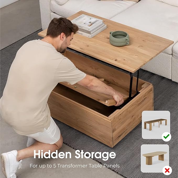 - ✅ Lift-Top for Multi-Use: Smooth lift-top mechanism transforms the living room furniture coffee table into a dining room table or workspace, ideal for living rooms, home offices, and TV rooms.