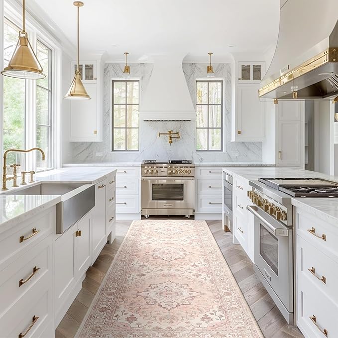 Area Rugs 2'x8' Washable Non-Slip, Floral Vintage Distress Print Pattern Medallion Carpet for Living Room Bedroom Dining Room, Pink Greypink Cute