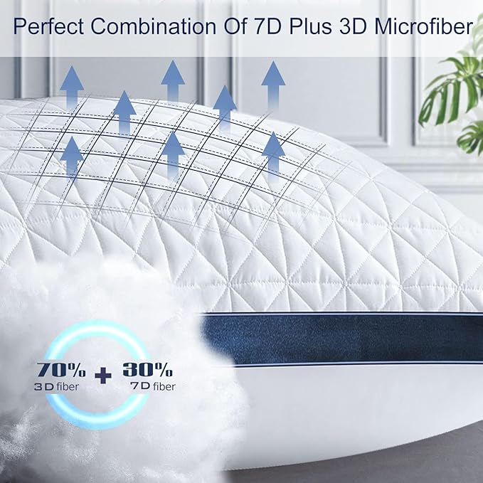 - SOFT & SUPPORTIVE QUEEN PILLOWS: Filling is the core of pillow, our king pillows filled with selected squishy down alternative microfiber, 3D microfiber provide softness, 7D microfiber guarantees sufficient support and rebound, which lead you a incredible comfortable feeling. You won’t feel neck or should pain for its’ too soft or too firm, say bye to tossing and turning all night