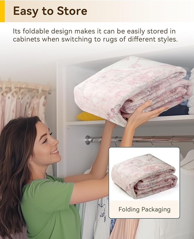 - Thin Design & Folding Packaging: this rugs with moderate thickness not only decor your home, soft on touch but also can be easily placed behind doors and under furniture. The sweeping robot can move around to clean the area rug. The thin design also makes it convenient for you to put the rugs into the washing machine for cleaning and easy to store.