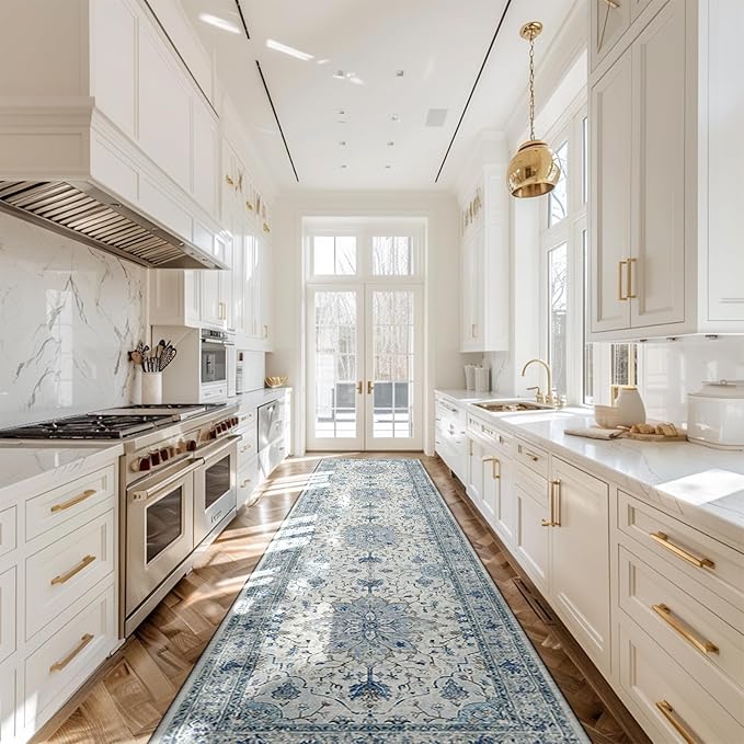 Area Rugs 2'x10' Washable Non-Slip, Floral Vintage Distress Print Pattern Medallion Carpet for Living Room Bedroom Dining Room, Light Blue Navy Beige Gray White