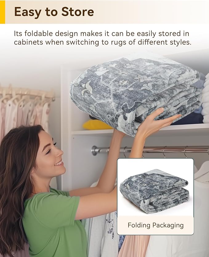 - Thin Design & Folding Packaging: this rugs with moderate thickness not only decor your home, soft on touch but also can be easily placed behind doors and under furniture. The sweeping robot can move around to clean the area rug. The thin design also makes it convenient for you to put the rugs into the washing machine for cleaning and easy to store.