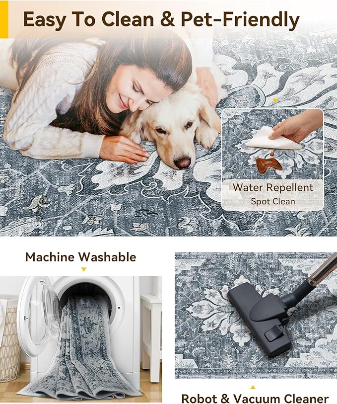 - Machine Washable Rugs Easy to Clean: the surface is water-repellent which allows for easy cleanup when beverages are accidentally spilled, as the liquid is less likely to seep in. Simply use a towel to promptly wipe away any spills. For localized stains, you can use a cleaning agent and a damp cloth for spot cleaning, or utilize a vacuum cleaner for overall maintenance. You can also put the rug in a washing machine as it is a machine washable rug.