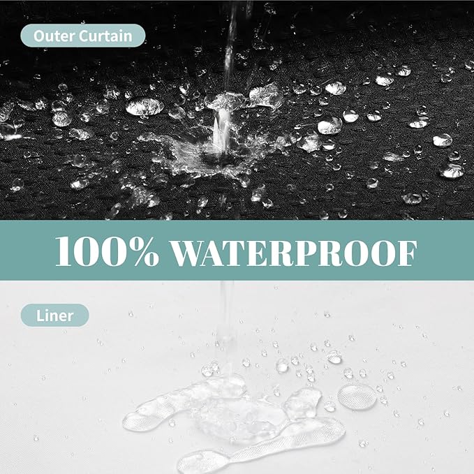- 【Standard Size】:54"W x 80"L(same size as 54"W x 78"L hooked shower curtain) for shower curtain and 53"W x 60"L for snap-in liner.Fits most standard-sized bathroom