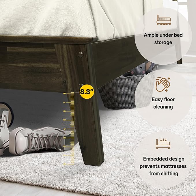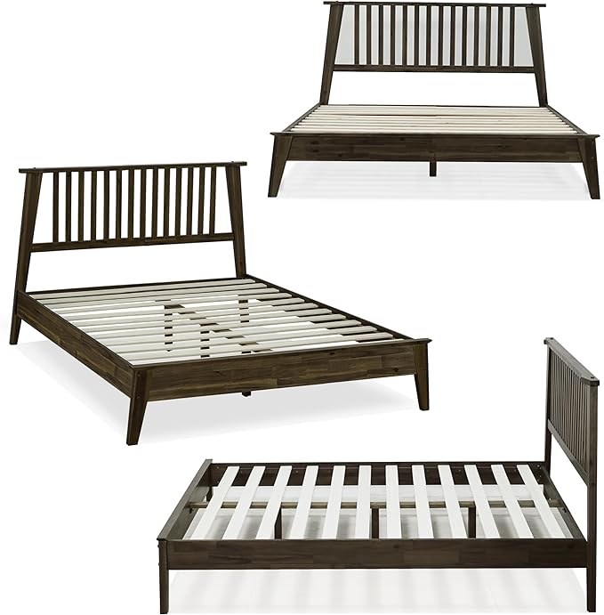 Acacia Kaylin Bed Frame Queen Size with Headboard Solid Wood Platform Bed, Mid Century Wood Bed Compatible with All Mattress Types, Non-Slip Noise-Free, Easy Asssembly, Mocha.