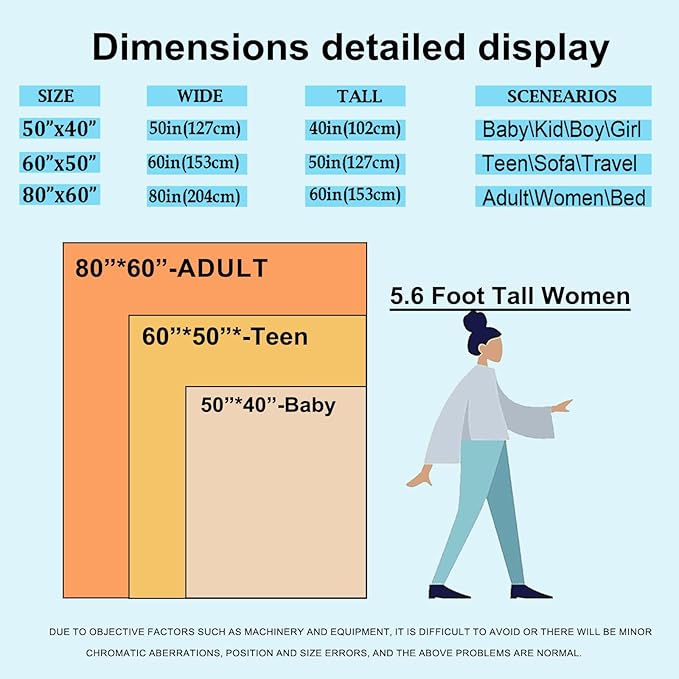 - Blanket Size: Please note that we have three sizes, the Panda blanket size is 50" X 60", 40" X 50", 60" Three sizes of Panda blankets to fit women, men, babies, kids, dogs, pets and just about anywhere you can think of.