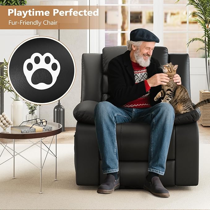ANJ Power Lift Recliner Chair with Massage and Heat, PU Leather Overstuffed Electric Lift Chair for Elderly, Oversized Single Sofa Recliner with Side Pockets, Remote Control(Black)