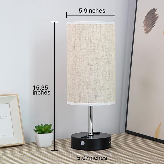 Table Lamp with Motion Sensor and Constant on Mode, USB Lamp Include Warm White Bulb, Built in USB Port & AC Outlet, Bedside Lamp Idea for Bedroom Retro Cream