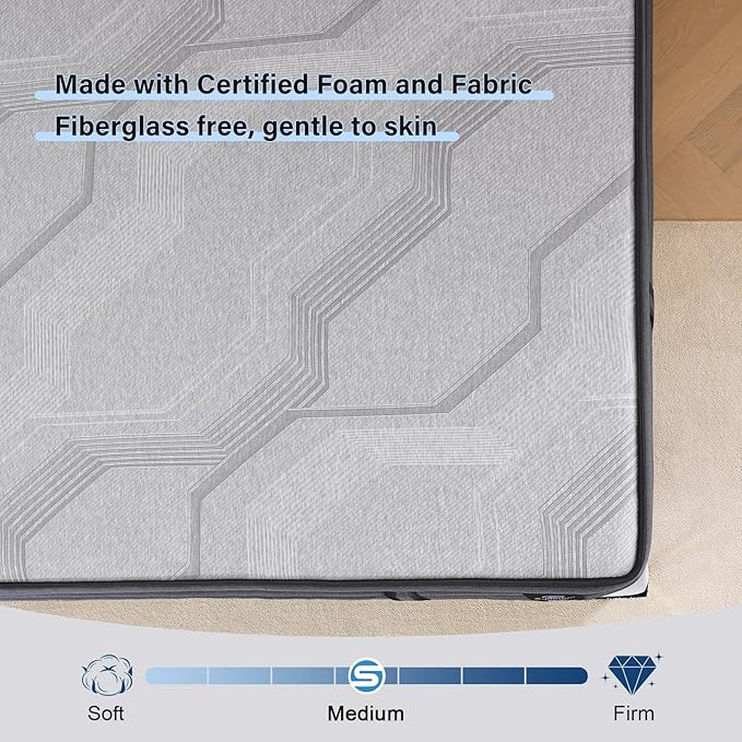 - QUALITY IN EVERY DETAILS: 450g knitted cover for pleasing touch. Certified foam & Oeko-Tex fabric for safe. 8 side handles for easy lifting (most mattress in the market only have 4). 11 gauge 8.5 inch 6-turn steel coil for edge support. We're proud of the material that goes into our mattress. Every Suiforlun mattress comes with a 120-night sleep trial and a 10-year support, ensuring its durability and your peace of mind.