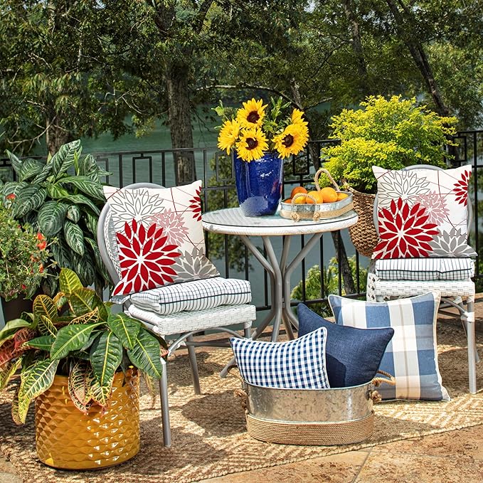 Red and Pink Grey Floral Pillow Covers 20x20 Set of 2 Outdoor Waterproof Decorative Throw Pillows Valentines Pillow Covers Polyester Cushion Case Decor for Couch Patio Funiture Garden Porch 01X20