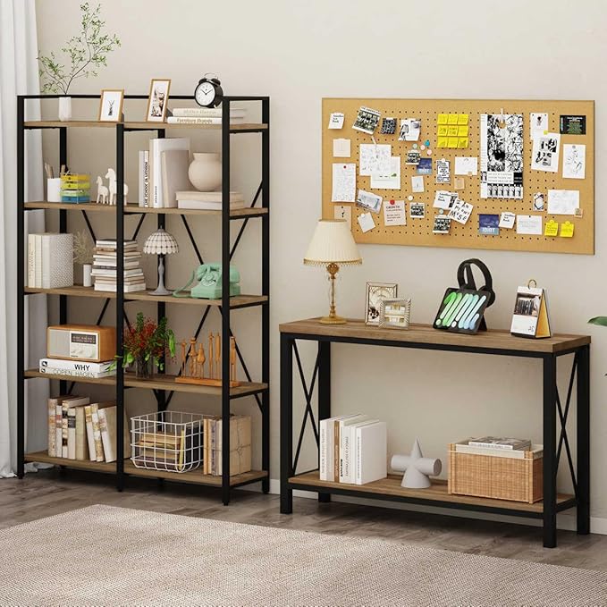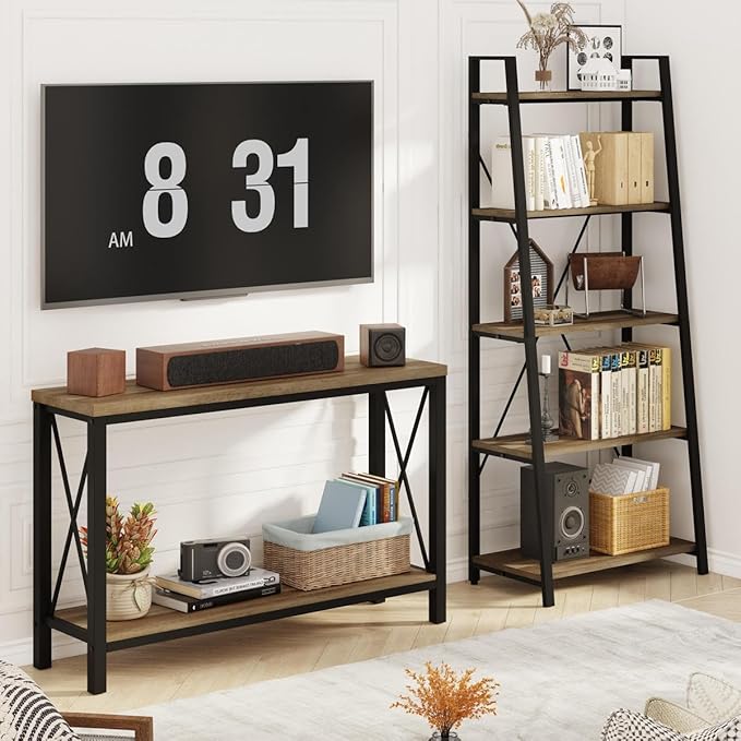 - Ideal Dimensions - Measuring 47.24"W x 13.39"D x 30.12"H, this rustic console table fits perfectly in any living area. With a ground clearance of 4.09 inches, the bottom shelf is designed to accommodate robotic vacuums, making cleaning easier. Use it as an entryway storage table, a console for the living room, a stylish TV stand, or a two-tier bookshelf for your favorite books.