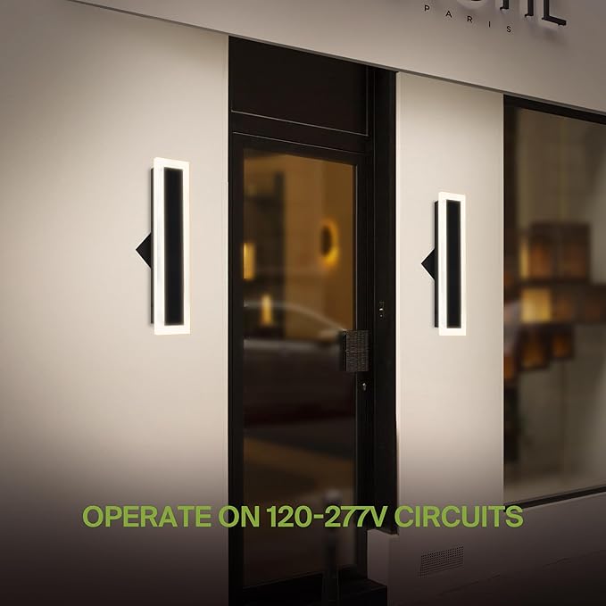 ASD LED 18" Long Wall Mount Light Fixture, Outdoor & Indoor Linear Sconce | 3CCT, Dimmable, Waterproof, Anti-Rust, ETL Listed | 18W 1500LM 3000-5000K 100-277V | Exterior Porch Lighting | Black