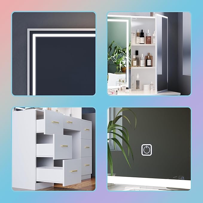 - đă Ample Storage for All Your Essentialsă- Enjoy ample storage space with 7 drawers and a mirror cabinet to neatly store all of your makeup, perfumes, hair tools, and essentials in one convenient vanity. The vanity desk with mirror will keep your dressing and grooming environment well-organized and meet your daily makeup basis.