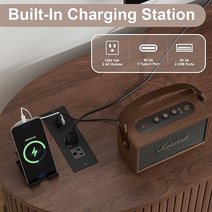 - 【TV Stand with Charging Station】2 AC outlets, 1 Type-C port, 1 USB port, allow you to charge multiple electronic devices at the same time, such as cell phone, tablet, laptop etc. Meet the power supply and charging needs of all your electrical appliances.