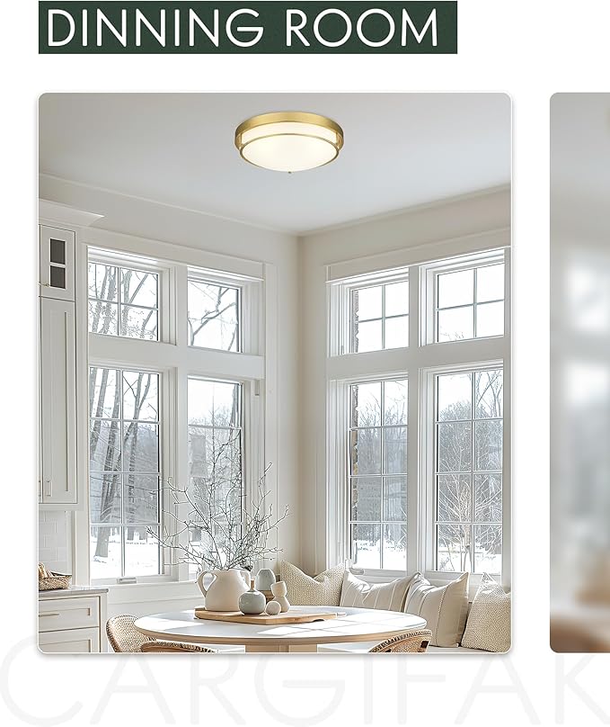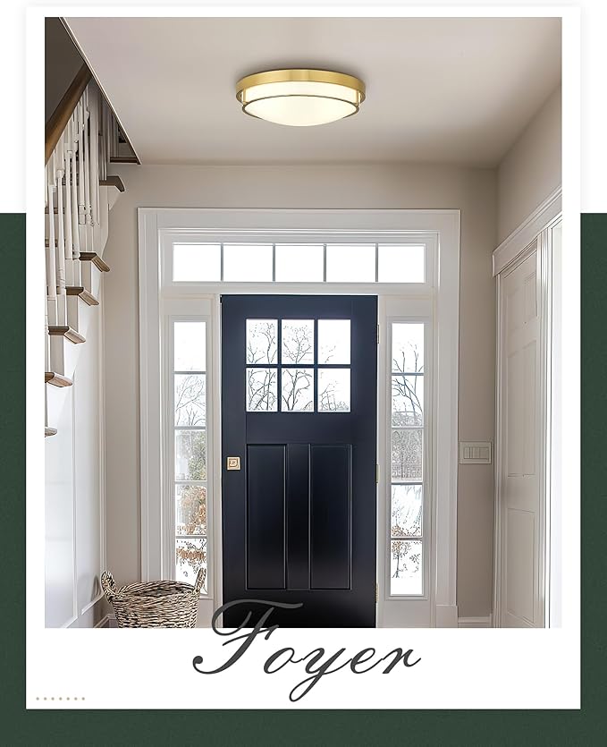 - MODERN DESIGN: This light fixtures ceiling mount is made of high-quality metal frame and frosted glass, which is durable and non-glare. Simple shape and polished gold finish design, can perfectly match any decoration. The semi flush mount ceiling light not only provides you with lighting, but also enhances your sense of life atmosphere.