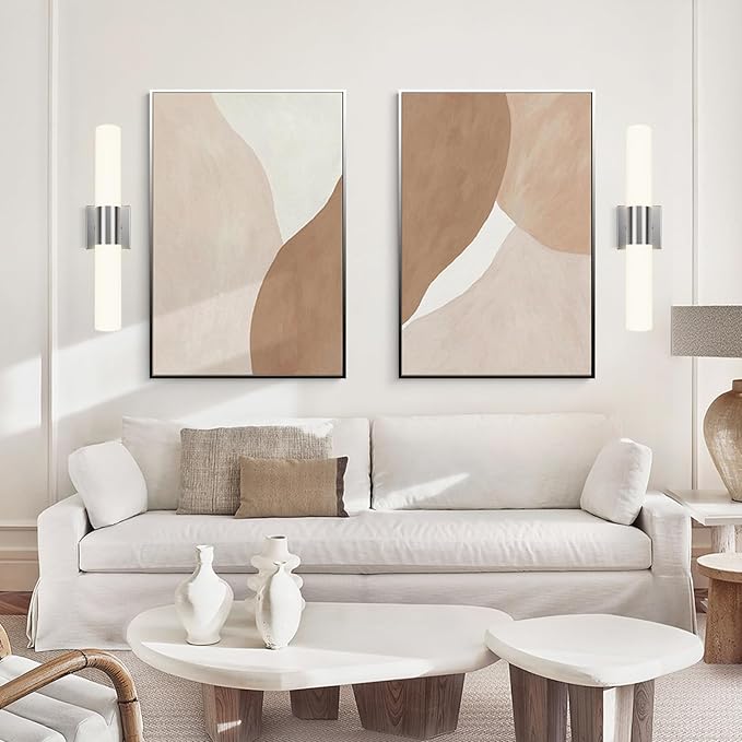 - 【Modern and Unique Design】 KALIUM Bathroom wall sconces set of 2, Made of sturdy metal with brushed Nickle finish and frosted glass shades, The cylindrical glass shade of the vanity lighting fixtures allows the light to illuminate the entire bathroom evenly, making it not only a vanity light but also a great piece of art
