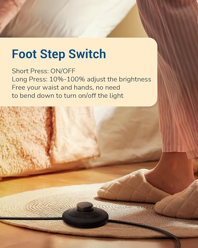 - [Foot Switch & Memory Function] One-button operation with foot switch control. Short press to turn on/off it; Long press to adjust the brightness, just moves feet away when you think the brightness is appropriate. The led corner lamp can also memorize the pattern you set up before closed