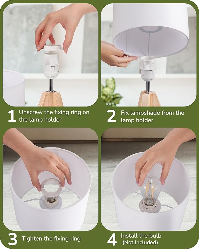 - [Easy Assembly] Simple to put the side table lamp together in minutes, the socket ring will fix the shade tightly, and the switch on the cord makes it easy to turn on and off. E26 base fits Incandescent/LED/CFL/Halogen Bulb (Bulb not included)
