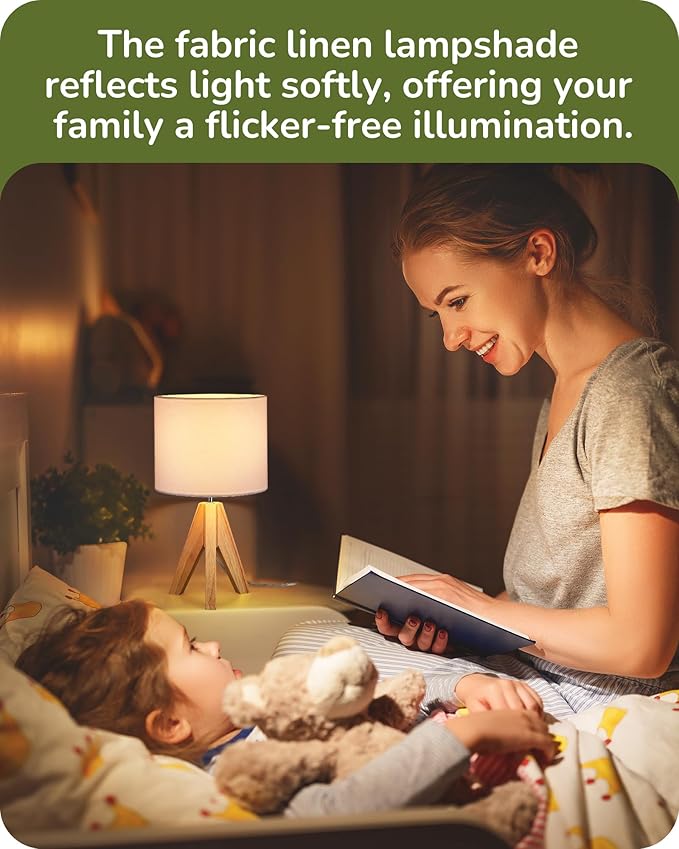 - [Stable & Safe] Built with a sturdy wooden tripod base, this side table lamp is highly stable and resistant to tipping, perfect for homes with children or pets; the lamp's cord, plug, and switch are all UL-listed, meeting national safety standards