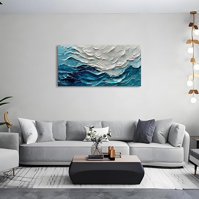 Art 24x48 inch Hand-Painted Blue Ocean Landscape Oil Painting Large Abstract Canvas Art Home Wall Decoration