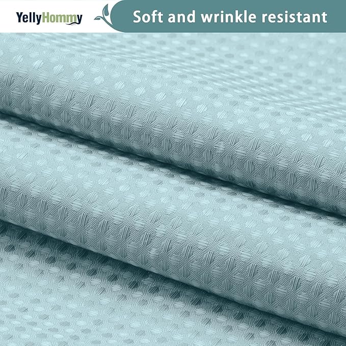 YellyHommy No Hook Shower Curtain with Snap in Liner Set Less Waffle Shower Curtain for Bathroom (Cyan, 87" L x 72" W)