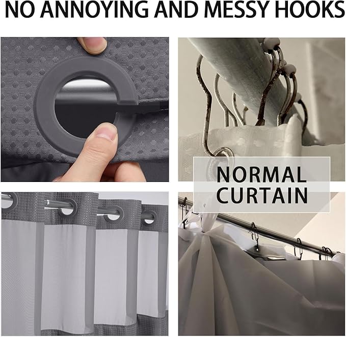 - 【No Hook Shower Curtain Set】: Install in 20 seconds without the hassle of annoying and messy hooks, and no need to remove the rod!
