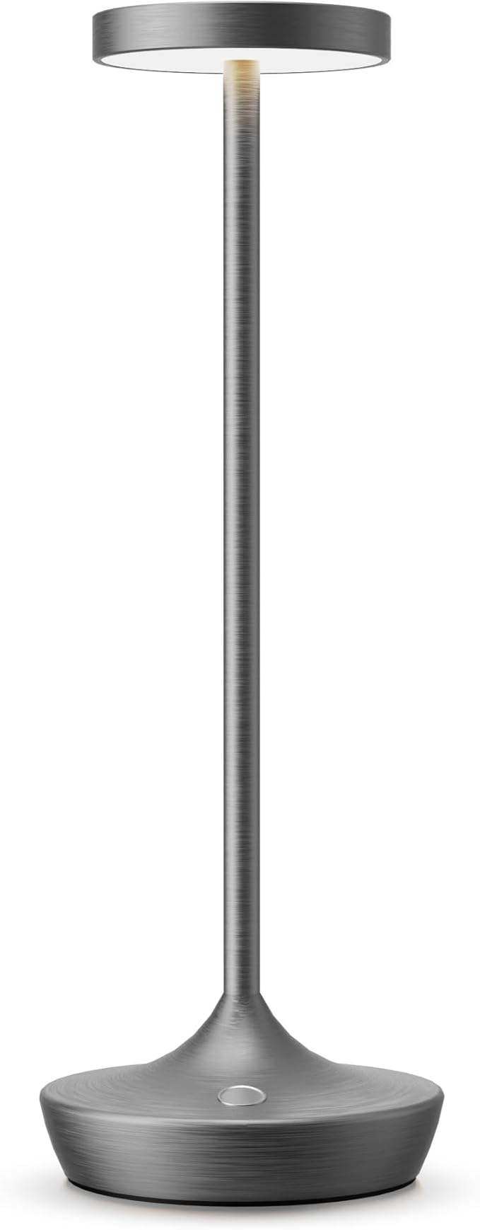 Cordless Table Lamp, Rechargeable Battery Operated LED Desk Lamp, 3-Color Stepless Dimming, Portable & Waterproof, for Restaurants, Bedrooms, Bars, Outdoor Parties, Camping, and Cafes (Gray)