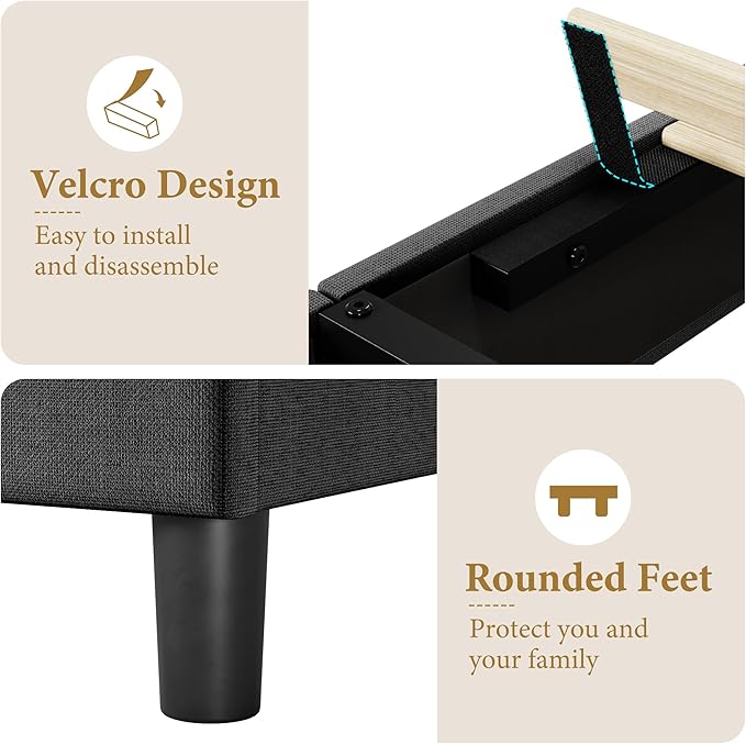- 【Adjustable Headboard】: Adjustable upholstered headboard ensures a fully connection with the mattress, which is more stronger and can prevent your mobile phone or other small things falling down to the floor.Fit perfectly for a mattress of 8.3-12.2 inches