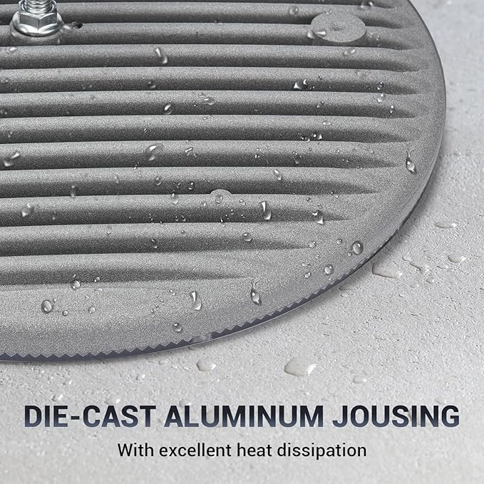 - 【Durable/Long Service Time】This UFO LED high bay light adopted high quality non-flickering driver ensure it over 50,000hours lifespan. It comes with an die-casting aluminum shell which features great thermal conductivity, these make the light durable and excellent heat dissipation. for workshops, barn, gymnasiums, factories, exhibition halls, shopping malls, supermarkets, storage yards, basements and any other large commercial and industrial places