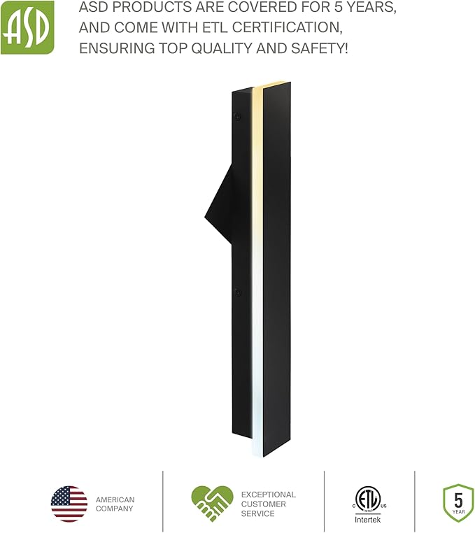 ASD LED 48" Long Wall Mount Light Fixture, Outdoor & Indoor Linear Sconce | 3CCT, Dimmable, Waterproof, Anti-Rust, ETL Listed | 36W 2200LM 3000-5000K 100-277V | Exterior Porch Lighting | Black