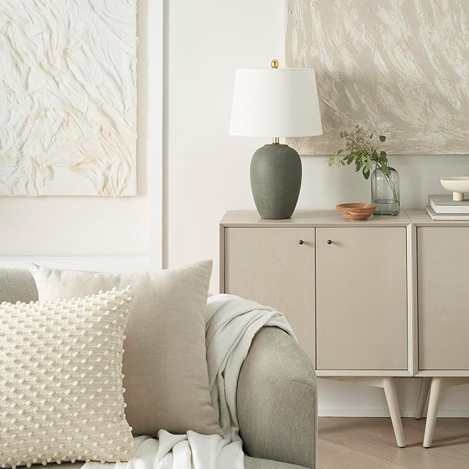 Nourison Home 23" Olive Green Ceramic Pot Table Lamp for Bedroom, Living Room, Dining Office, with White Tapered Drum Shade