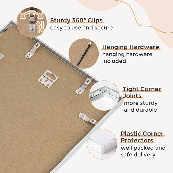 - Stylish Minimalist Design: 11x14 poster frame features an ultra-narrow 0.3'' molding that transforms your photos into priceless artwork. Enjoy an elegant, professional look with our flyjoe metal picture frame