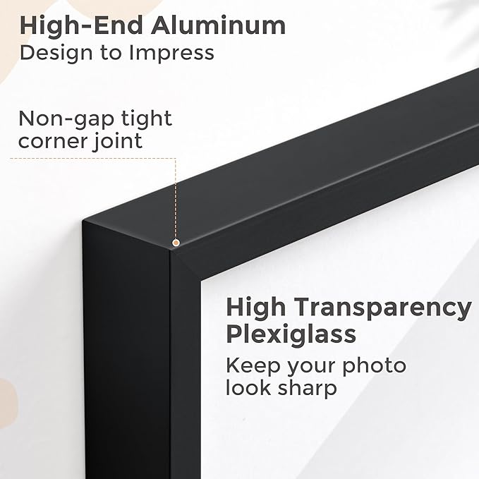 - Stylish Minimalist Design: 5x7 black picture frame features an ultra-narrow 0.3'' molding that transforms your photos into priceless artwork. Enjoy an elegant, professional look with our flyjoe metal picture frame