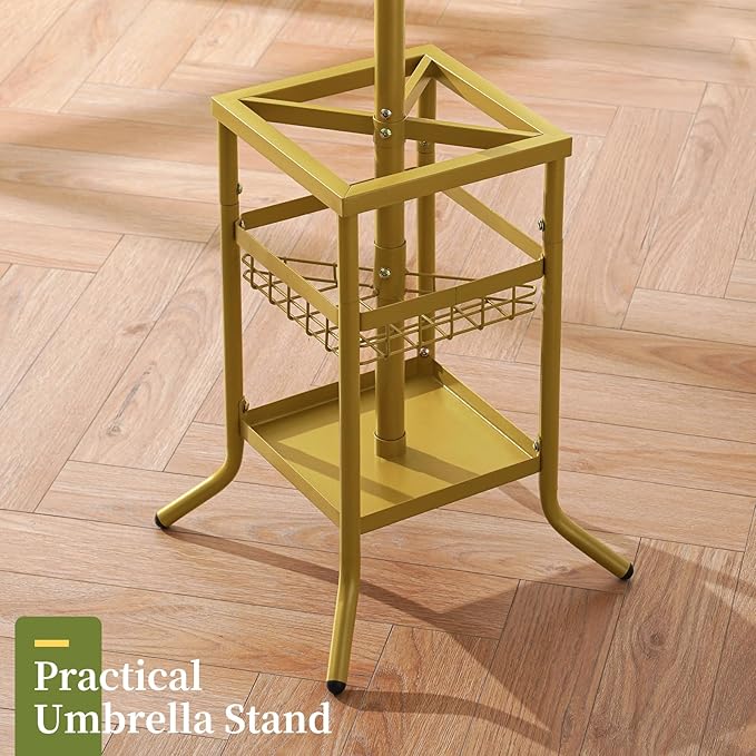 - Practical Umbrella Holder: Upgraded with an umbrella stand, the coat stand offers a space-saving and organized storage solution for your dripping umbrellas. Suitable for both folding and stick umbrellas, the purse rack stand includes a bottom tray as extra protection to keep your floors dry and clean. Invest in the Yoobure hall tree for neat organization